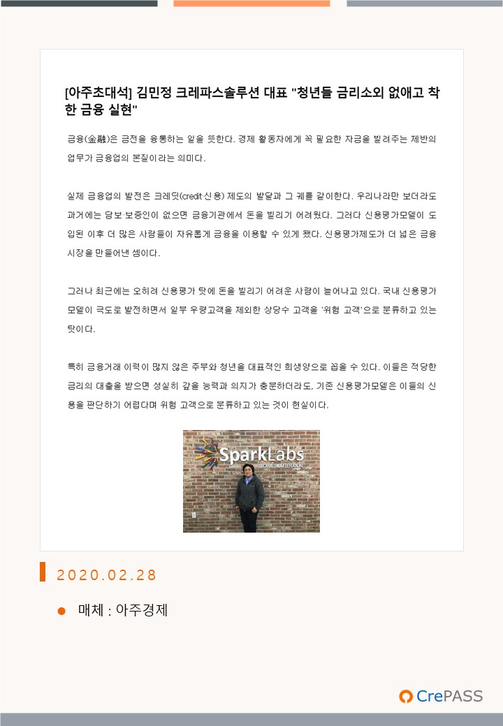 [아주초대석] 김민정 크레파스솔루션 대표 "청년들 금리소외 없애고 착한 금융 실현"