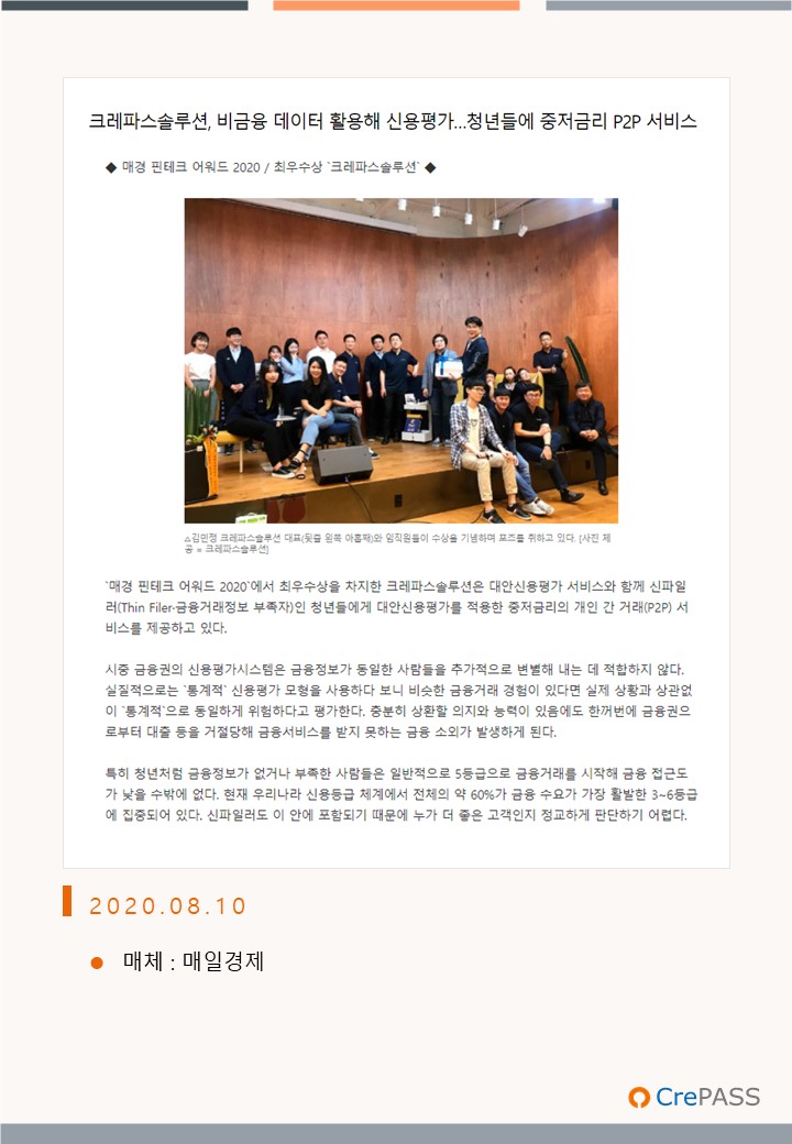 크레파스솔루션, 비금융 데이터 활용해 신용평가...청년들에 중저금리 P2P 서비스