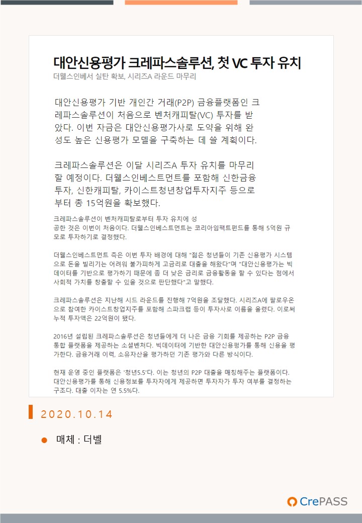 대안신용평가 크레파스솔루션, 첫 VC 투자 유치