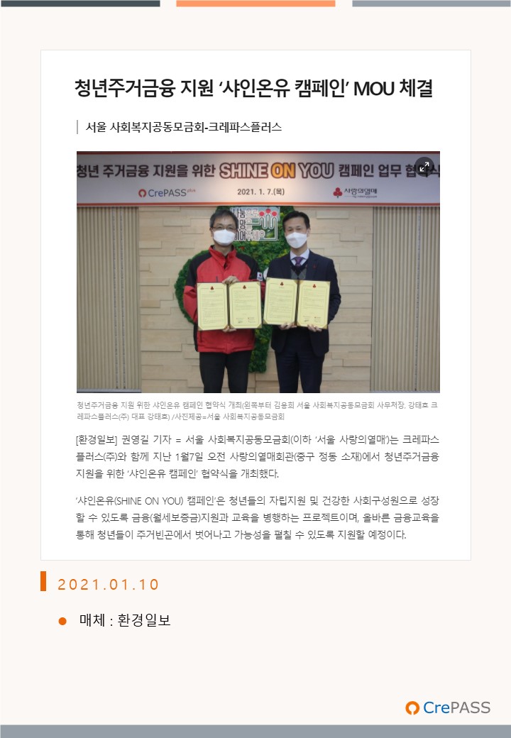 청년주거금융 지원 '샤인온유 캠페인' MOU체결