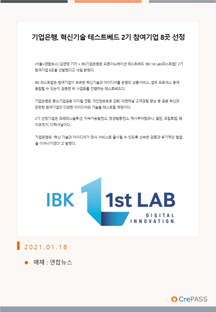 기업은행, 혁신기술 테스트베드 2기 참여기업 8곳 선정