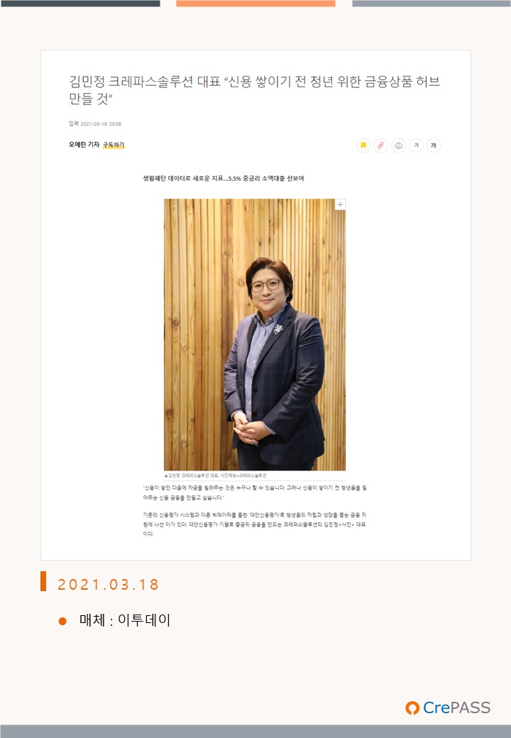 김민정 크레파스솔루션 대표 "신용 쌓이기 전 청년 위한 금융상품 허브 만들 것"