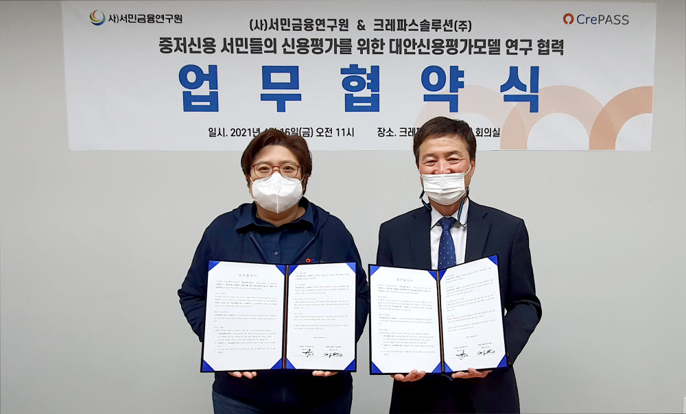 크레파스솔루션-서민금융연구원, 대안신용평가 고도화 MOU