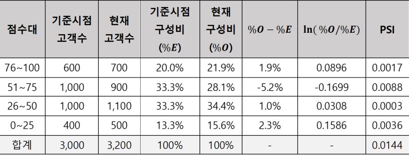 ④ PSI (Population Stability Index, 모집단