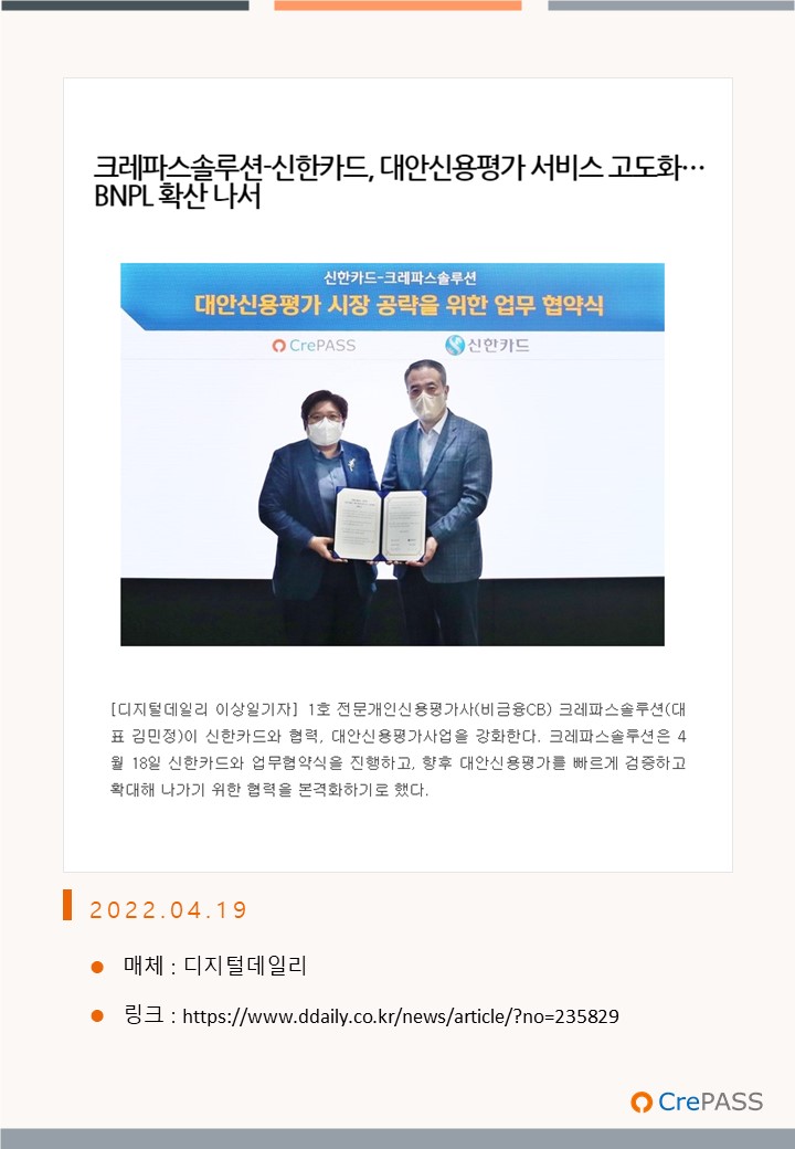 크레파스솔루션-신한카드, 대안신용평가 서비스 고도화··· BNPL 확산 나서