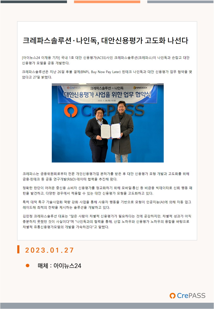 크레파스솔루션·나인독, 대안신용평가 고도화 나선다
