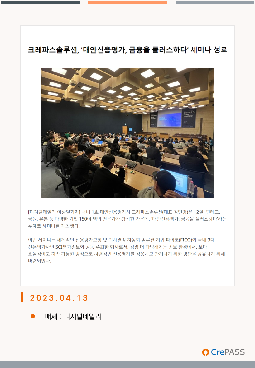 크레파스솔루션, '대안신용평가, 금융을 플러스하다' 세미나 성료