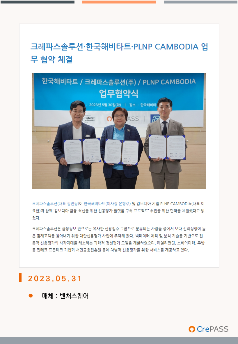 크레파스솔루션·한국해비타트·PLNP CAMBODIA 업무 협약 체결