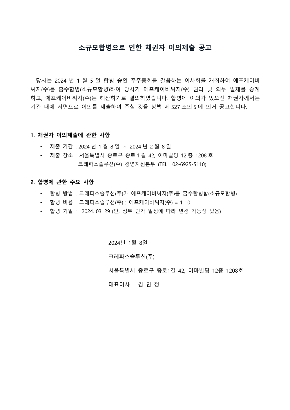 [크레파스솔루션] 소규모합병으로 인한 채권자 이의제출 공고_20240108.pdf