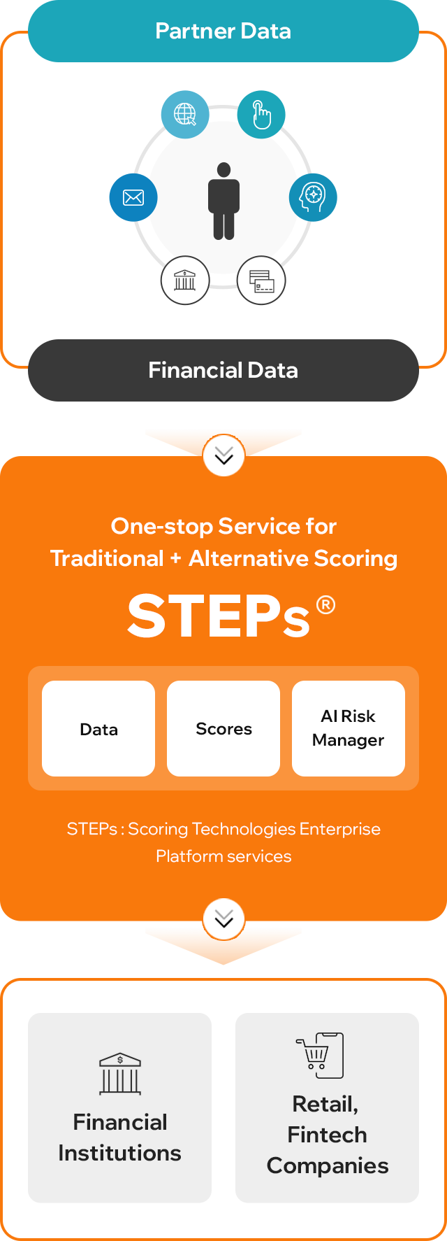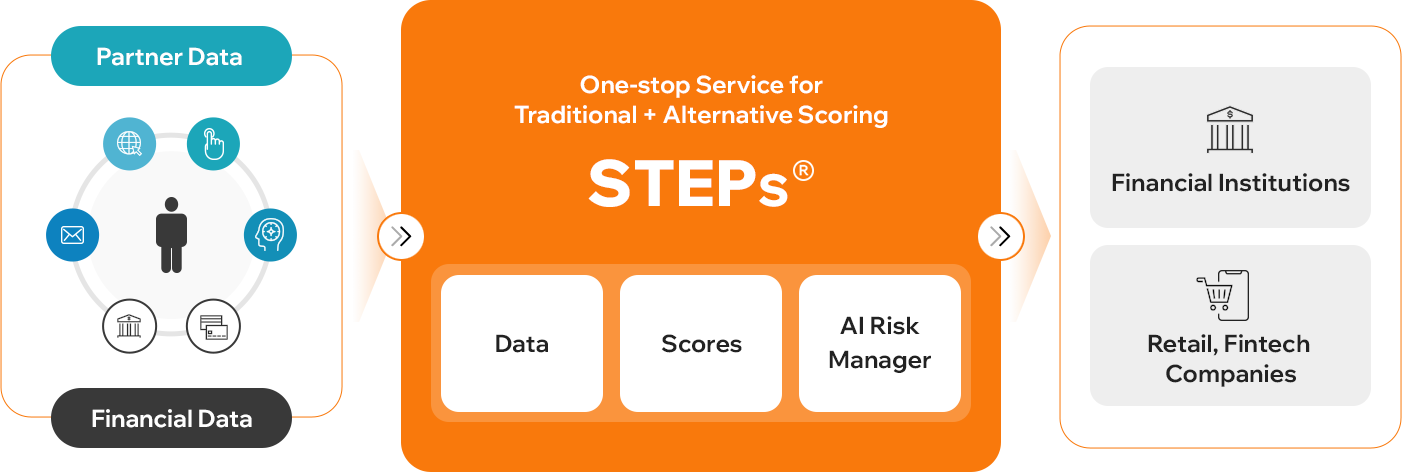 CrePASS provides a next-generation credit evaluation system that integrates traditional and alternative credit scoring. STEPs is an automated decision-making system that consolidates application data, financial transactions, and alternative data, enhancing loan assessment accuracy with patented technology, AI algorithms, and risk management tools.